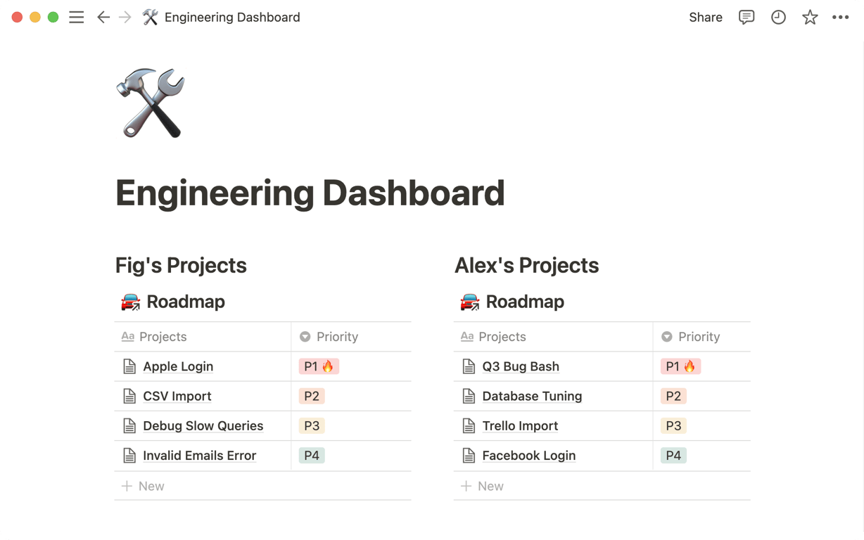 - 你可以在一个页面上添加你想要的多个链接数据库。为不同的目的过滤它们,创建你自己的仪表板。