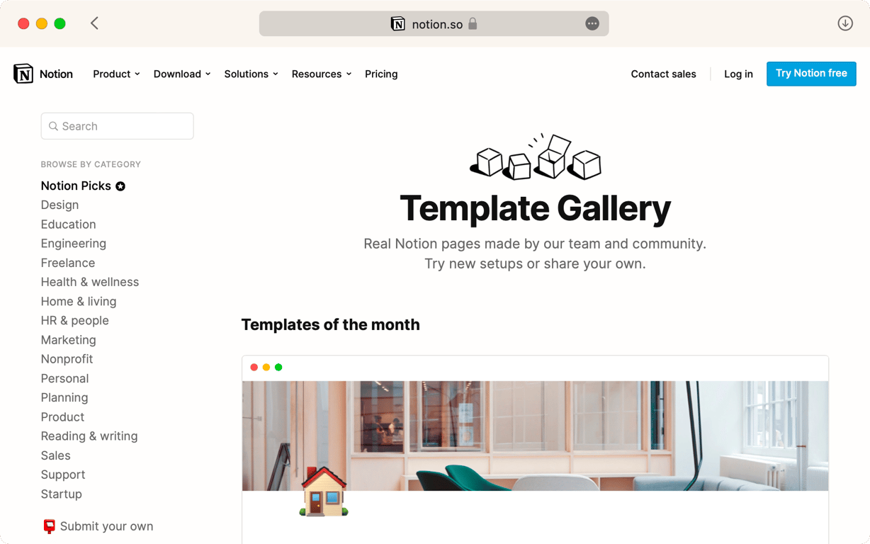 Notion 模板库包含世界各地的 Notion 用户为多种用途而构建的数十个模板,将公共模板页面复制到您自己的工作区后,调整它以完美匹配您的工作流程。