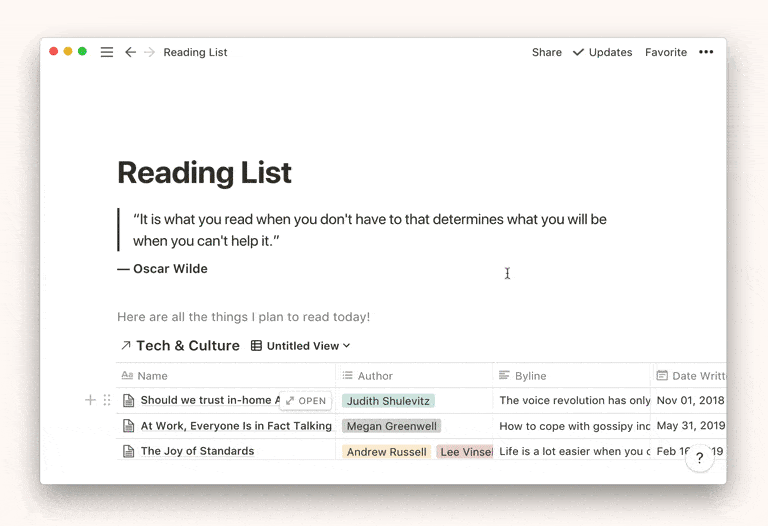 • 要在数据库中提及某人,可以在数据库内的页面正文中@提及他们,或者将他们添加到Person属性字段中。他们会收到相同类型的通知。这对于在任务数据库中给人分配事情是很方便的。